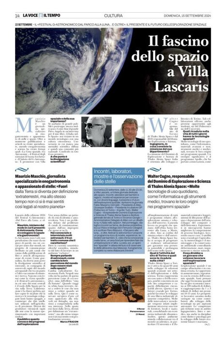 Domenica 22 settembre a Villa Lascaris, Pianezza (Torino), si è tenuta l'edizione 2024 del Festival G-Astronomico. Un'intera giornata dedicata al gusto e allo spazio che ha visto la partecipazione di importanti ospiti del mondo scientifico e aerospaziale, con qualche excursus fantascientifico.